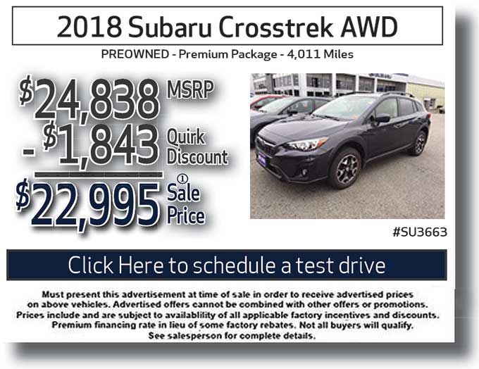 Looking for a quality used Subaru car in the Bangor, ME area at a great price? Look no further. We currently have a large selection of specials for various used Subaru vehicles ready for purchase. Whether it's a used Subaru Forester, Outback, XV Crosstrek, or a Legacy, we are sure to have the Subaru car and deal that fits you best. Each used car has been rigorously serviced to ensure that they not only look like-new, but drive like-new as well. Browse our available used car specials and contact us when you're ready to save big and drive down the streets of Bangor in style.